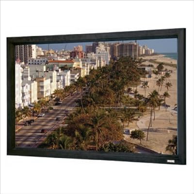 Best1 Cinema Contour with Audio Vision fabric. . Available in sizes from 60" to 240" diagonal in video format and 92" to 159" diagonal in HDTV format. Cinema Contour has a 45-degree angle cut frame for a sleek, modern appearance. Provides a perfectly flat viewing surface for video projection applications. . Surface mounts to back of black powder coated frame that provides a masking border. Permanently Mounted Wall Screen. Frame available with Pro-Trim finish. Pro-Trim is a fabric frame covering that aesthetically enhances the appearance of the installation while absorbing light that surrounds the viewing area. . Audio Vision is designed for applications where a more realistic soundstage is desired, this fabric allows for the installation of speakers to be placed behind the surface. With virtually no sound loss and good image quality, this fabric provides the same optical characteristics as the Da-Mat surface with specially designed perforations to allow sound to pass through the screen material. Gain 1.0 with a 60-degree viewing half angle. . review