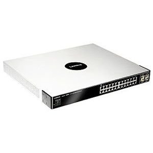 SMALL BUSINESS 24PORT GB 4SFPSLOT STACKABLE LAYERPower over Ethernet powers any of the 24 attached devices for increased placement options Resilient stacking technology allows management of multiple switches from a single configuration menuPower Budget allows for maximum power of 15.4WCAT 5 UTP 10/100Base-TXCAT 5e UTP 1000Base-T48Gbps Switching Capacity Non-blocking Able to secure the network through IEEE 802.1Q VLANs, IEEE 802.1X port authentication, Access Control Lists (ACL), DOS prevention, and MAC-based filtering17 5/16 W x 14 11/16 H x 1 3/4 DIncludes console cable, AC power cord and rack-mount kit