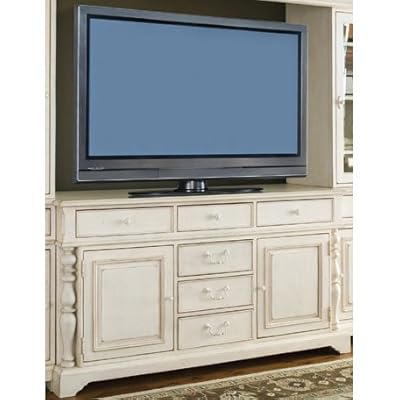 Features Entertainment Console: Six drawers Two drawers have full extension metal guides with drop front Two doors with adjustable wooden shelves behind doors Optional black speaker grills for doors