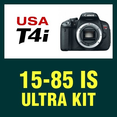 Canon EOS Rebel T4i - 650D Camera Body The Canon EOS Rebel T4i Digital Camera is the most sophisticated Rebel yet. It is an ideal camera for any level photographer. The new Rebel T4i delivers phenomenal image quality, high performance, and fast, intuitive operation. This 18.0 megapixel DSLR features an APS-C-sized CMOS sensor and a DIGIC 5 image processor for fast operation and tremendous low light performance to an expanded ISO of 25600. A 9-point all cross-type AF system (including a high-precision dual cross f/2.8 center point) delivers improved autofocus performance, and a new Hybrid CMOS AF System increases autofocus speed when shooting photos and video in Live View. Full HD 1080p video is supported and features a full-time Movie Servo AF system for continuous auto focusing while using live view to record movies. A built-in stereo microphone and manual audio level adjustment helps ensure that your audio will match the stunning quality of your video. A 3.0" Vari-angle touch screen LCD is incorporated and flips out and tilts for viewing from a wide variety of angles. The touch screen operation is highly intuitive and even allows you to control your focus points from the LCD. The Rebel T4i is compatible with SD/SDHC/SDXC memory cards and Canon's full line of EF and EF-S lenses. Items Included in this Kit: ? Canon EOS Rebel T4i - 650D Camera Body ? Canon EF-S 15-85mm f/3.5-5.6 IS USM Lens ? 8 GB Secure Digital (SD) Memory Card ? Holster case for SLR camera and zoom lens ? 72mm UV Digital Filter ? Standard Size Lightweight Tripod with 3 way Pan Head ? Mini Travel Tripod ? Lens Cap Holder ? USB 2.0 High Speed SecureDigitalTM Card Reader ? LCD Screen Protectors ? Lens Cleaning Kit ? Memory Card Wallet ? Canon T4i mfg items