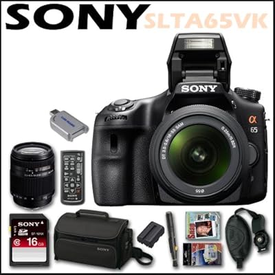 Best1 Sony DSLR SLTA65VK 24.3MP Digital SLR Camera & 18-55MM Lens . Sony 16 GB Memory Card - 18-250MM Zoom Lens . Screen Protector - Replacement Battery Pack - DSLR instructional DVD . Sony Camera Bag - Wrist Grip Strap - DSLR Remote Control . Lens Pen Cleaning Tool - Memory Card Reader . review
