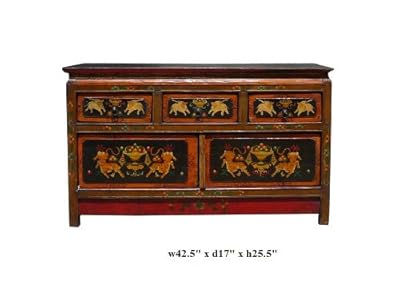 Best1 This low table can be a cocktail table , pedestal table or a TV stand. The surface . is painted with Tibetan style animals, treasures and flowers on each side. . review